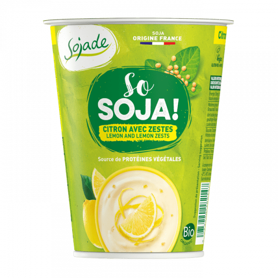 Ingredientes: Bebida de soja * 78% (água, grãos de soja descascados * 9,2%, morango * 9%, açúcar de cana cru *, xarope de milho *, aromatizante natural *, espessantes: pectina – goma de alfarroba, sumo de sabugueiro concentrado * , regulador de acidez: citrato de cálcio – ácido cítrico, culturas vivas selecionadas, das quais Bifidus e Acidophilus. * Agricultura biológica.